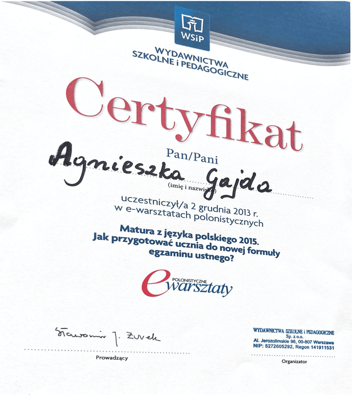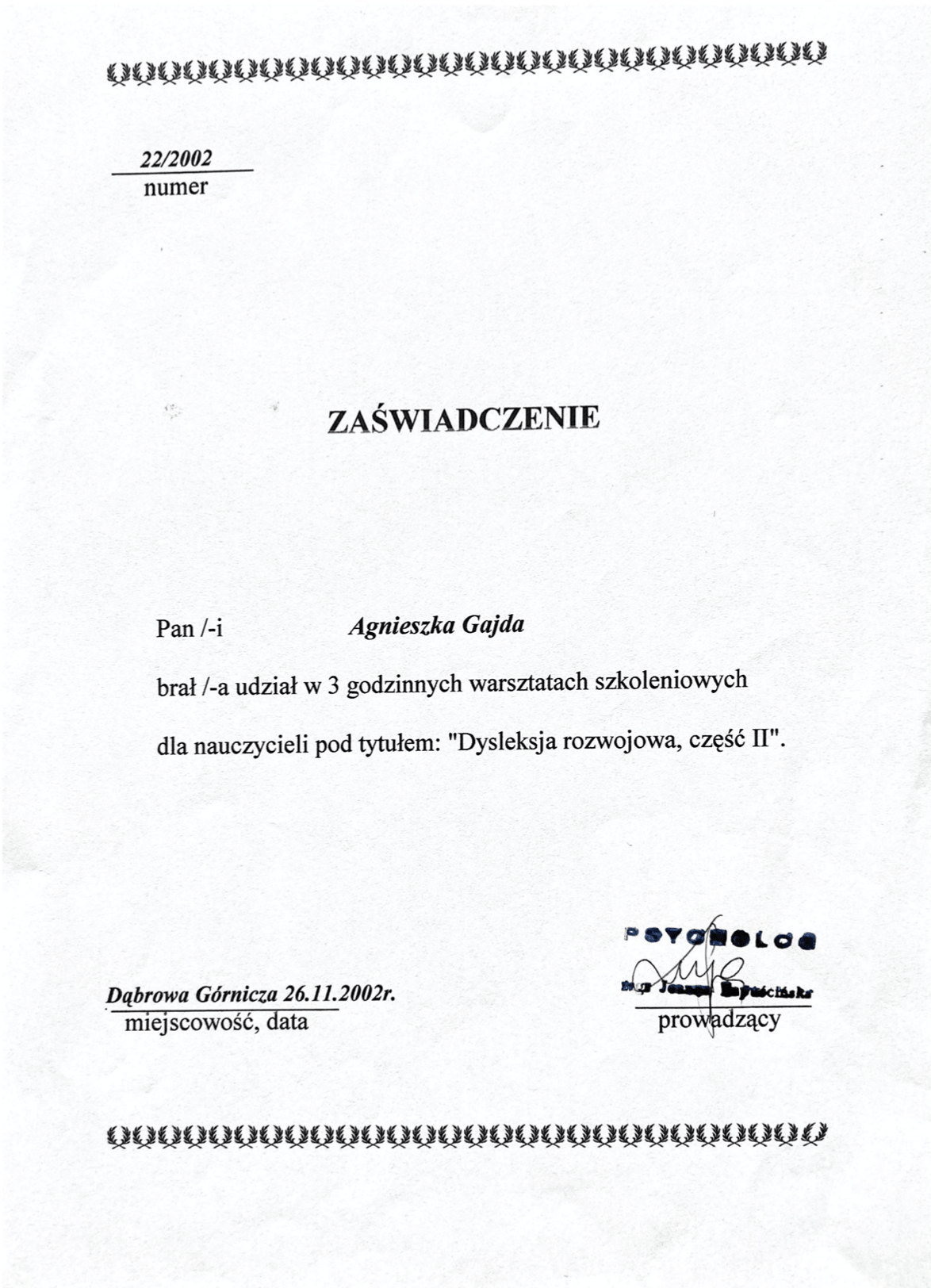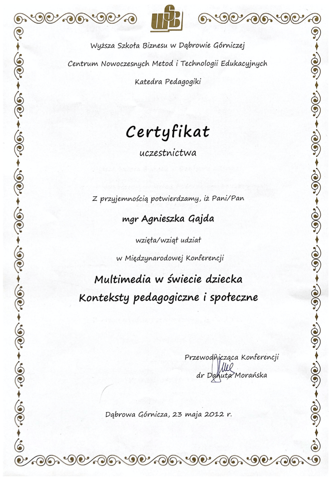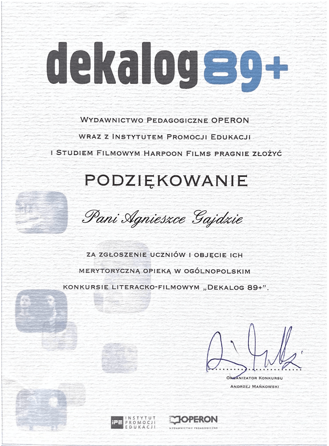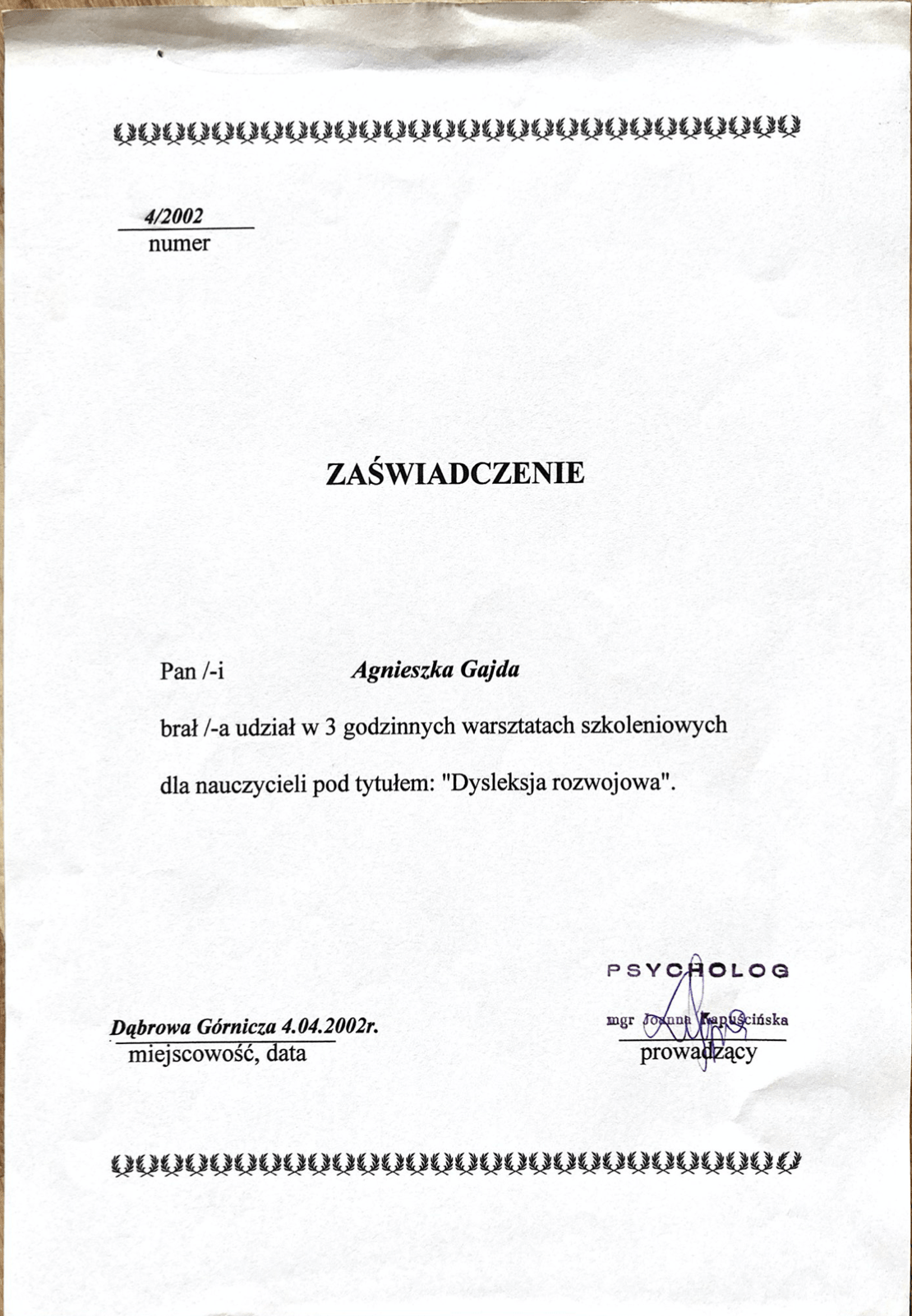 Dyplomy, certyfikaty, kursy, podziękowania
