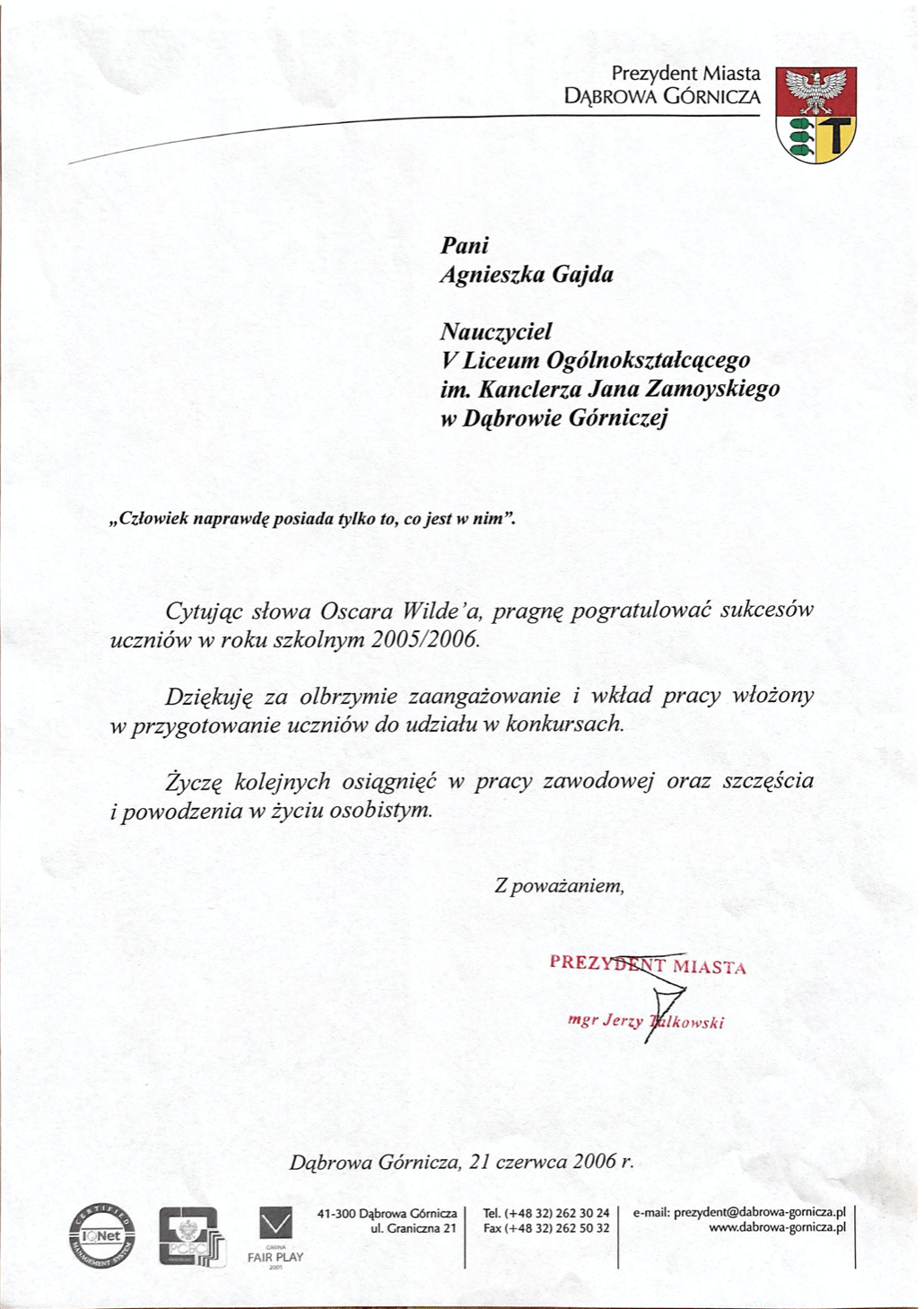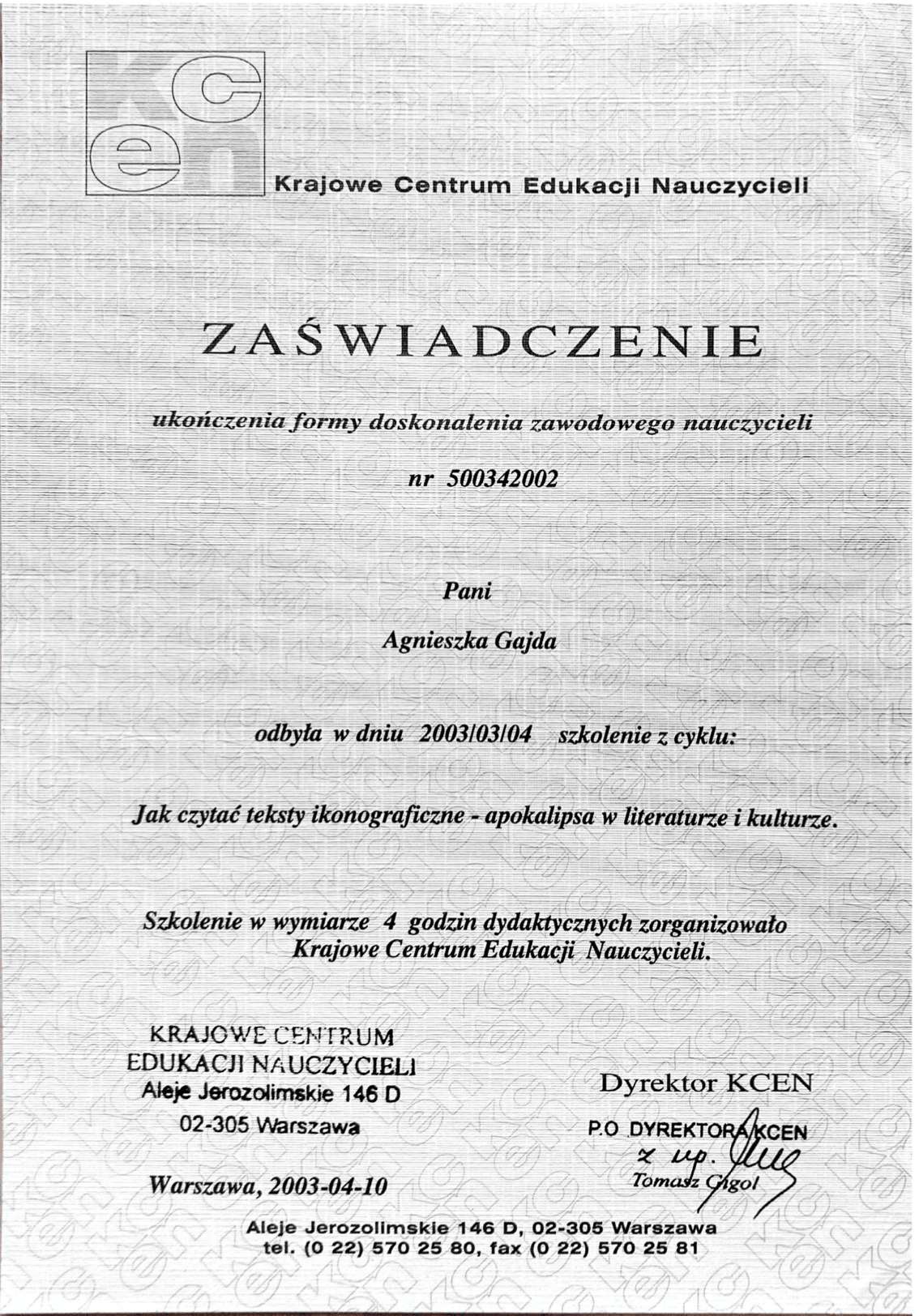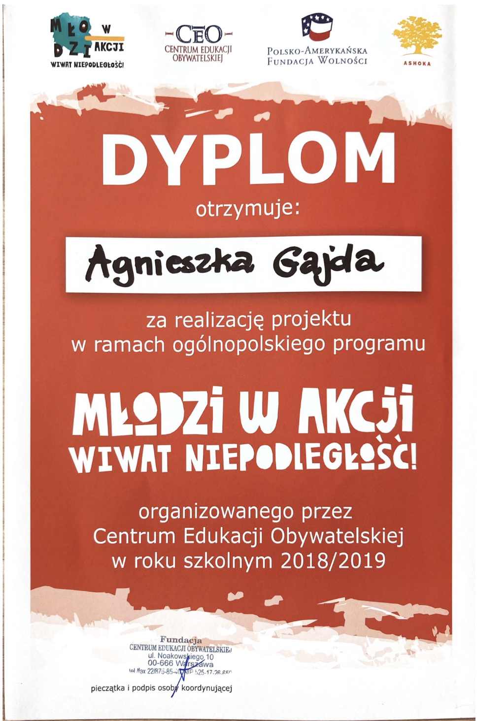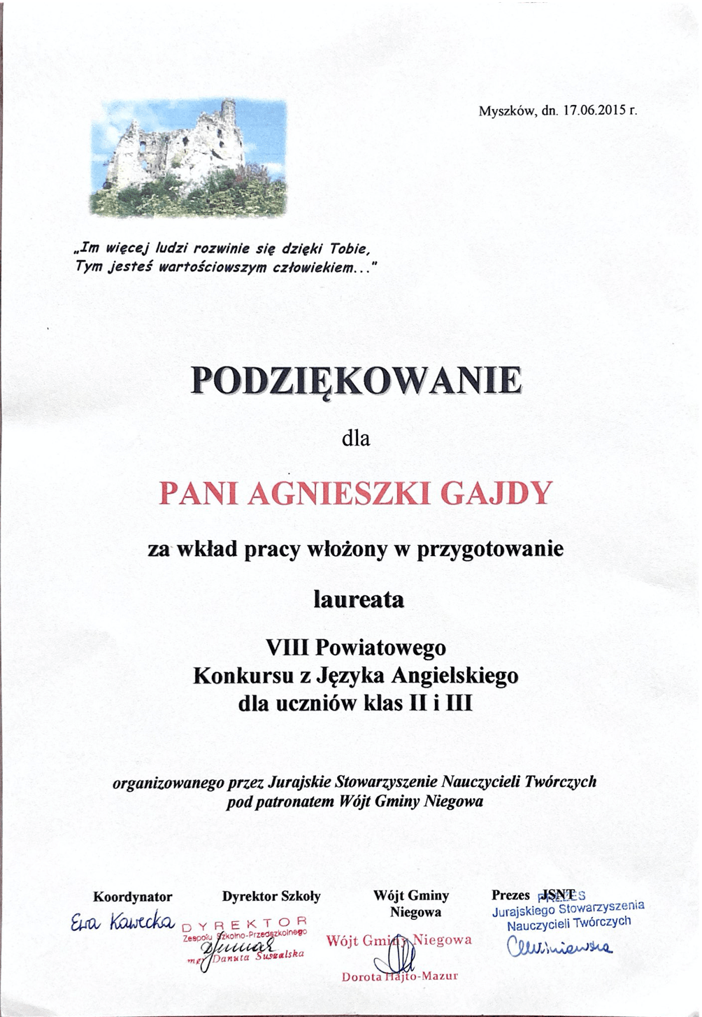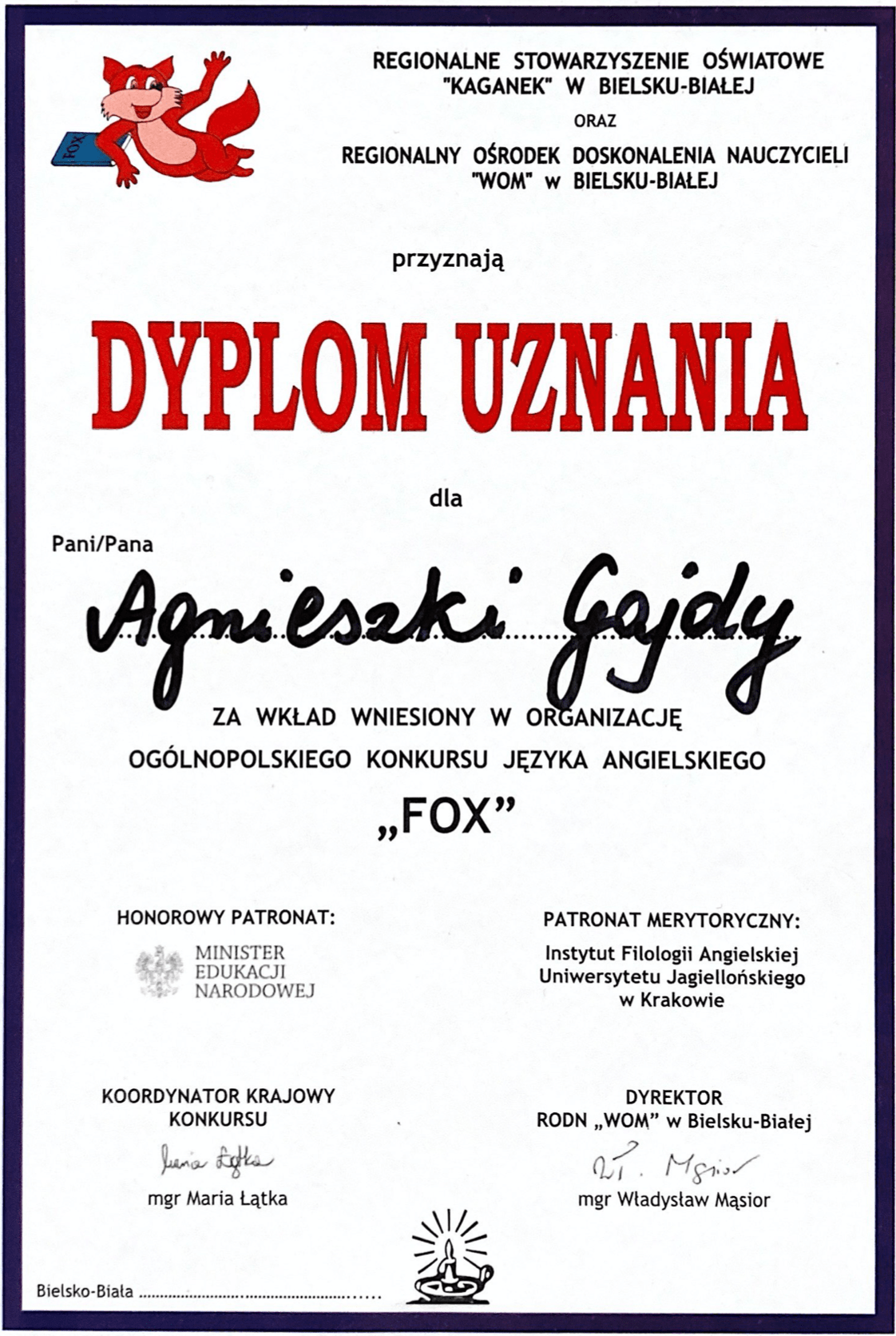 Dyplomy, certyfikaty, kursy, podziękowania