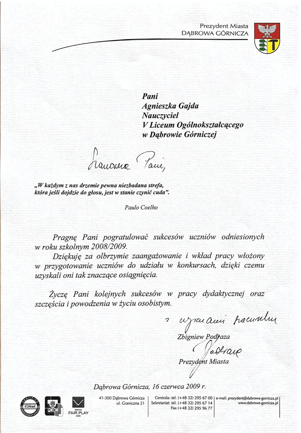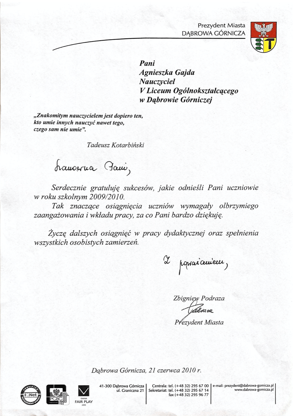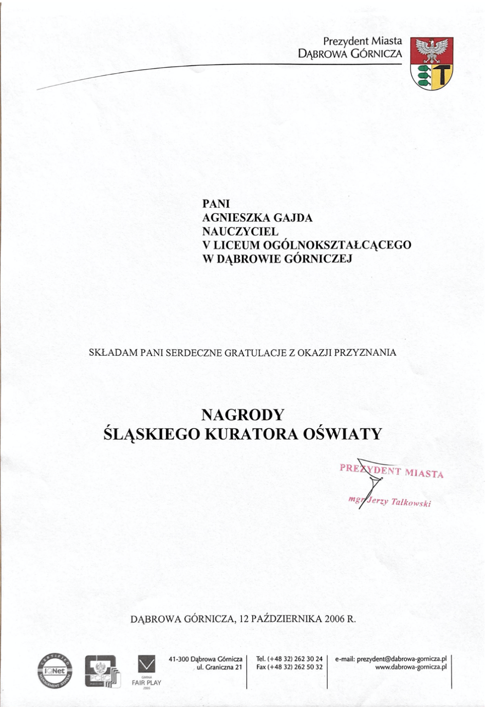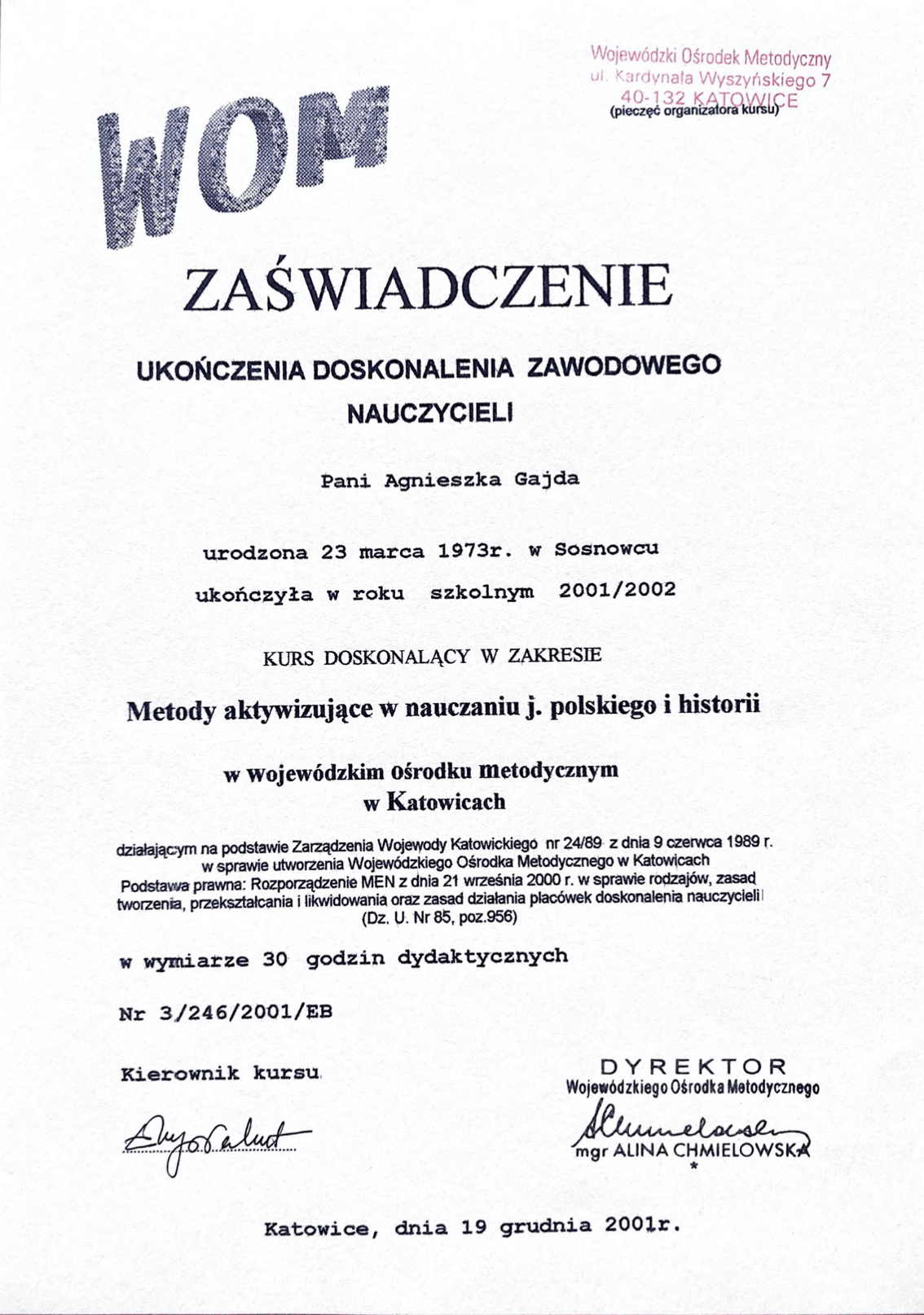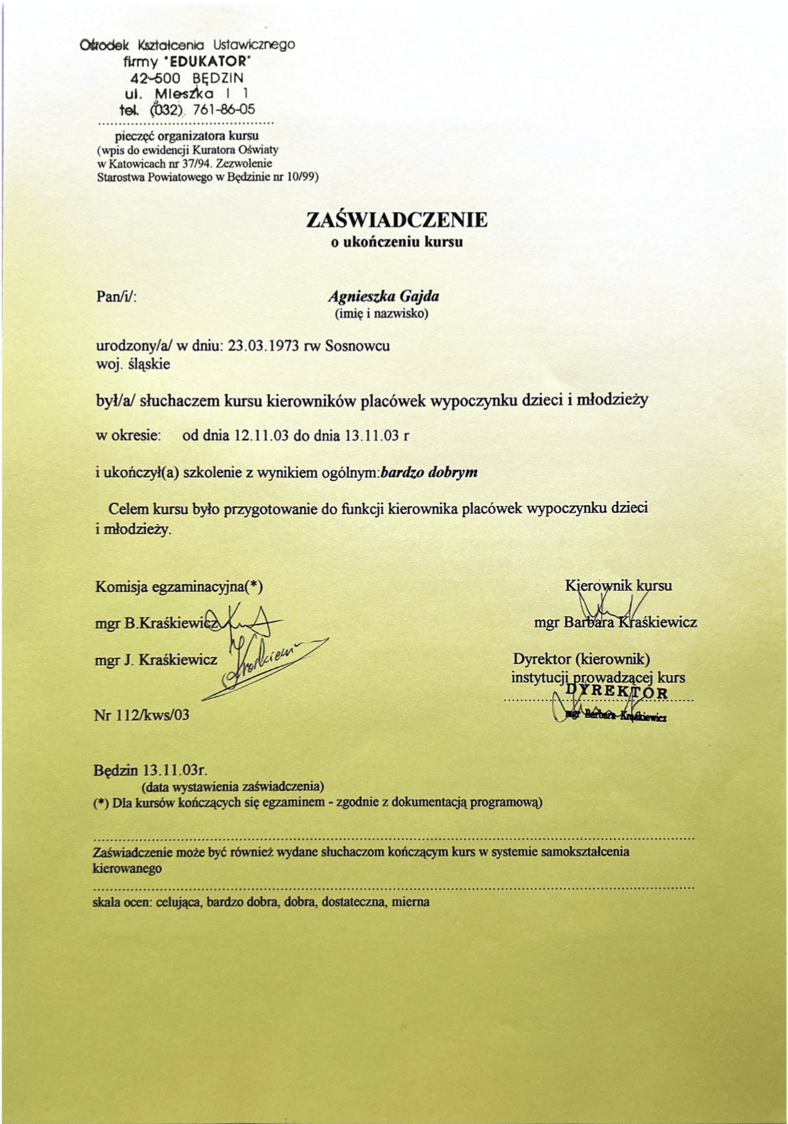 Dyplomy, certyfikaty, kursy, podziękowania